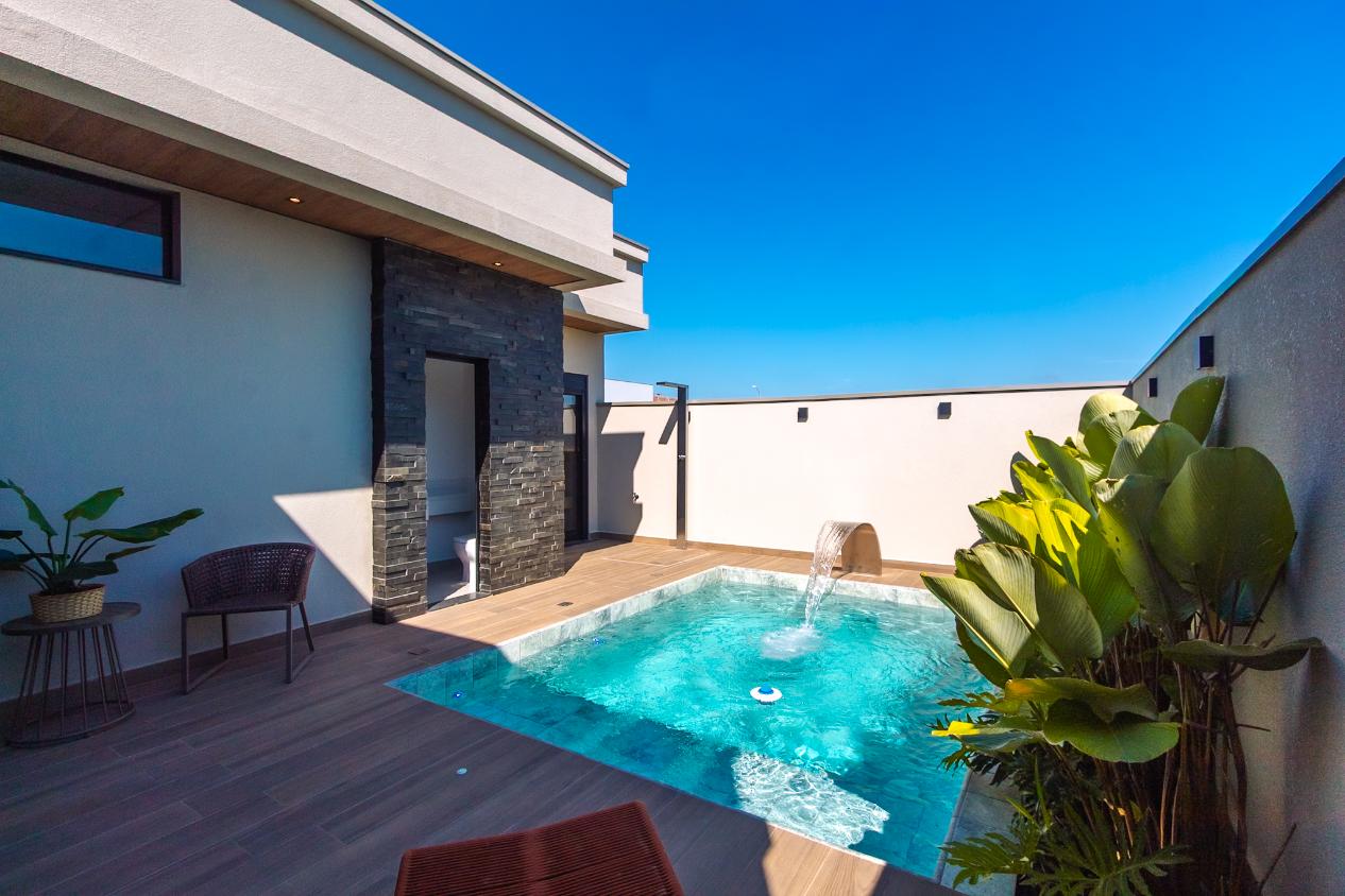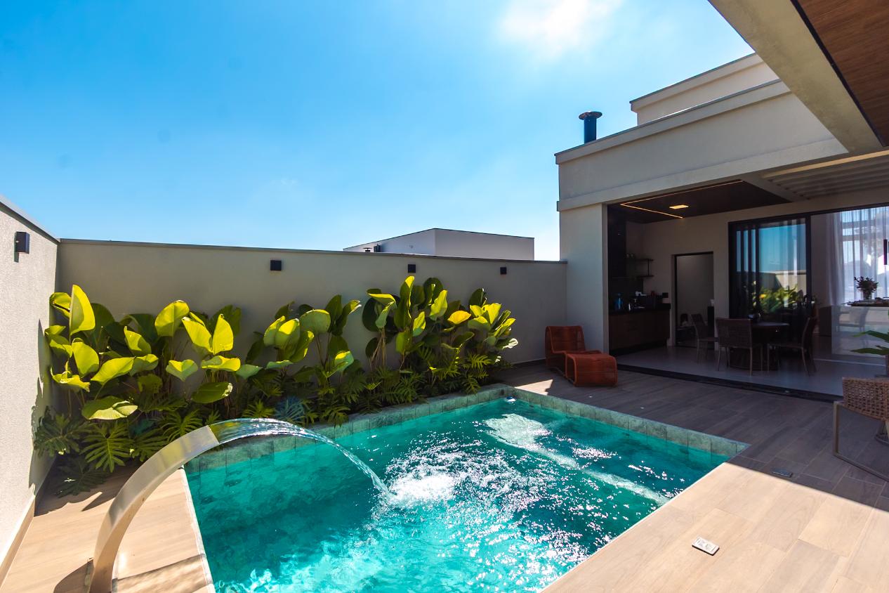 Nova! Acabou de ficar pronta. Localizada em um dos mais desejados condomínios de Indaiatuba. Térrea, fachada imponente, entrada social com fechadura digital. Living com pé direito elevado integrando estar, jantar e cozinha com ilha. Projeto de interiores com armários planejados e eletrodomésticos. Espaço gourmet com churrasqueira e area de estar. Piscina com cascata, prainha, iluminação em LED e preparação para aquecimento (instalado na laje superior da casa). Área íntima com 3 suítes, sendo 2 delas voltadas para o quintal. Suíte máster com closet e banheiro com cubas e duchas duplas. Todas as suítes possuem persianas blackout com acionamento automático. Área de serviços com acesso isolado. Deposito e área de luz coberta. Será entregue ainda com infra para ar-condicionado nas suítes, living e gourmet. E também com aquecimento solar (boiler). Os móveis soltos que compõem a ambientação são negociáveis. #condominiofechado #condominioindaiatuba #indaiatuba #casavendaindaiatuba #casanointerior #casavendaemcondominio #casaemindaiatuba #indaiatuba #corretorindaiatuba #imobiliariaindaiatuba #corretordeimoveisindaiatuba #corretordeimoveis #imobiliariaemindaiatuba #imobiliaria