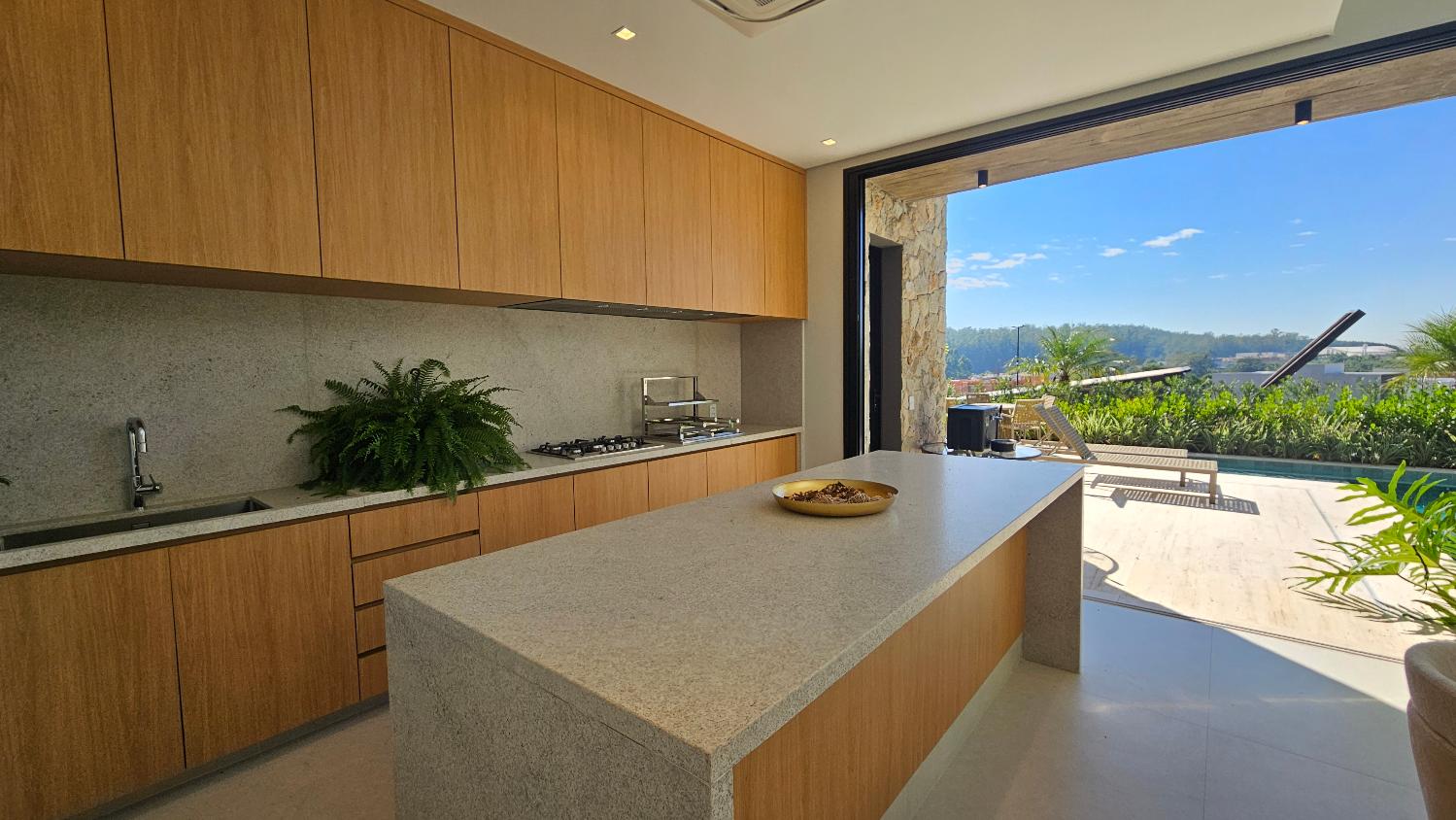 Será entregue com energia fotovoltaíca, aquecimento solar, sistema automático de irrigação e automação na iluminação e infra para som e imagem.