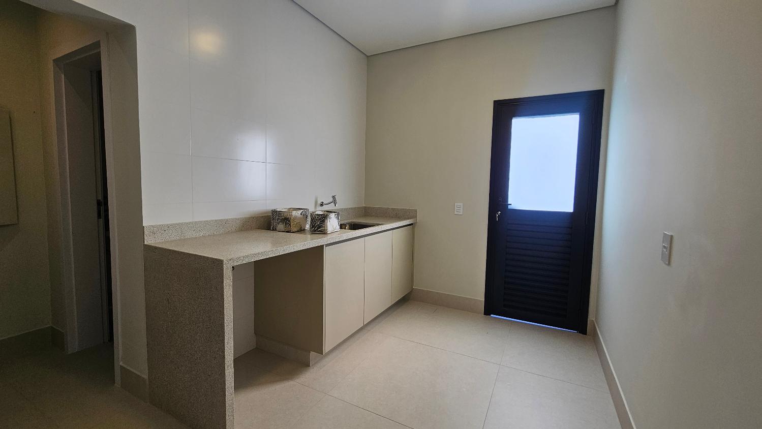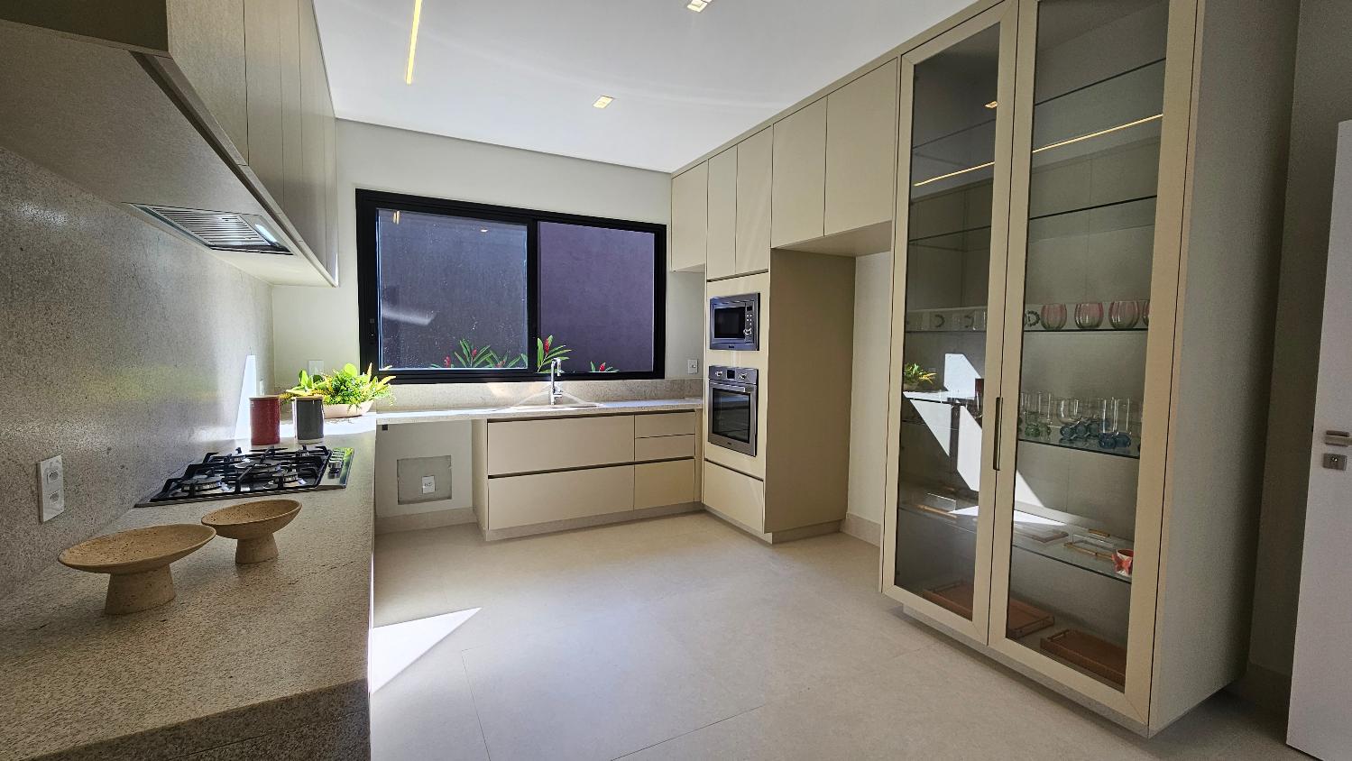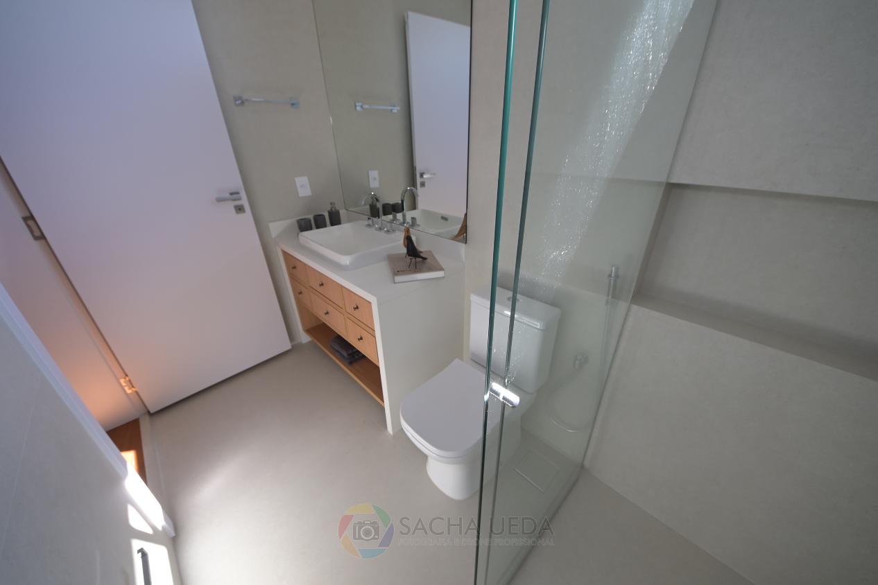 Ainda no 1º pavimento teremos, lavabo, escritório, suíte de hóspedes, cozinha fechada totamente equipada e despensa. Lavanderia com área de secagem de roupas, dormitório de serviços e banheiro completo.