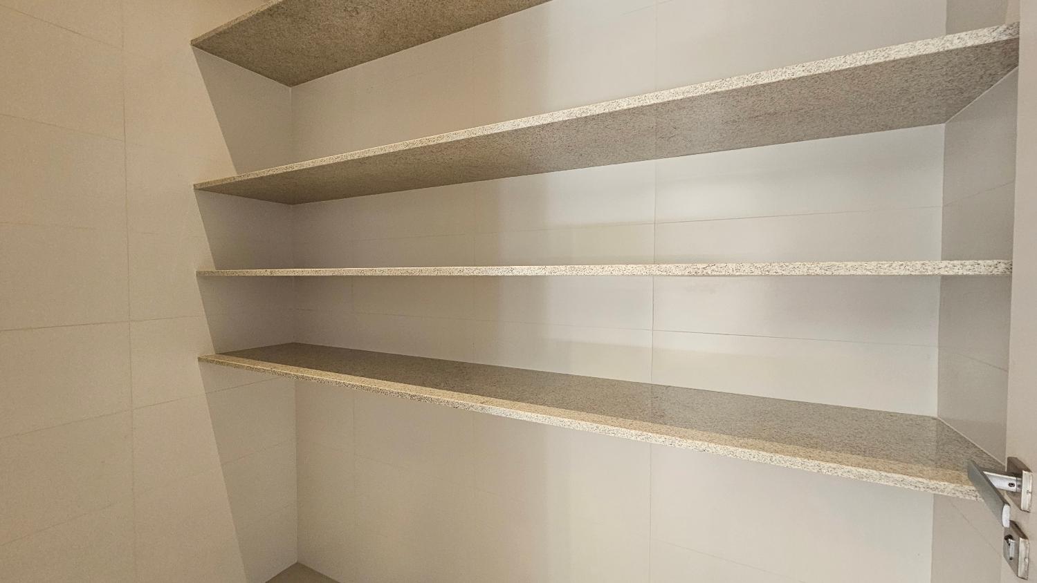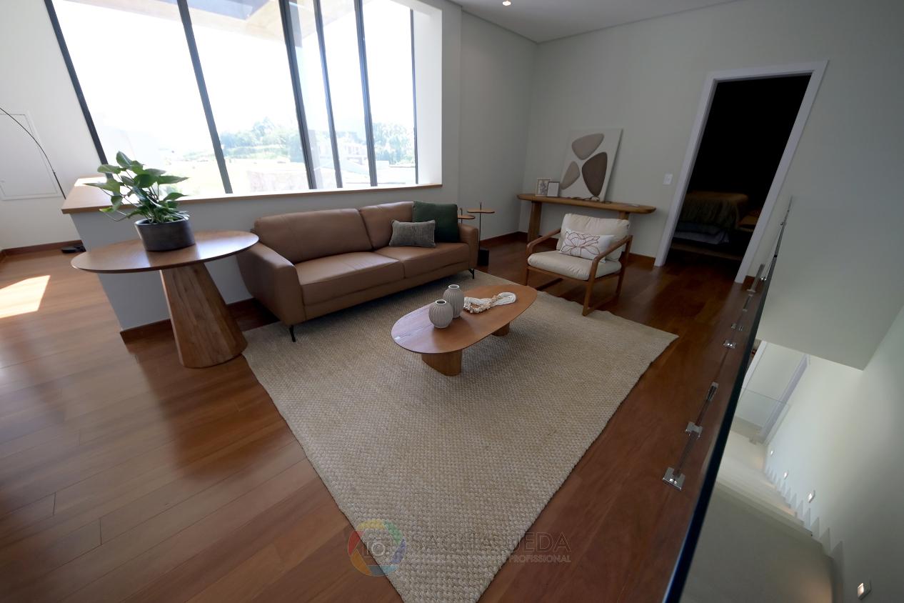 No pavimento superior teremos sala íntima e 03 amplas suítes, todas com closet e ar-condicionado.