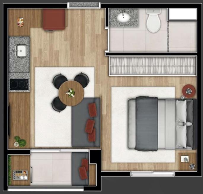 O condominio oferece ainda itens de lazer e conveniência como: piscina, academia, lavanderia, salão de festas, sala de reuniões e coorking.